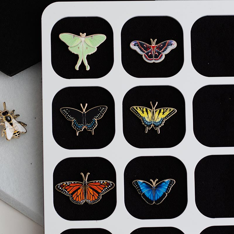 Introducing 10 brand new mini floral enamel pins—plus a whimsical mix of birds, butterflies, moths, and insects to round out your collection. From bright blooms to delicate wings, these designs are made to inspire curiosity, wonder, and connection to the natural world. ✨