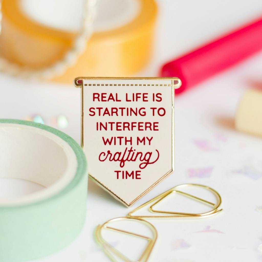 Calling all crafters! This is our favorite must-have accessory for every craft enthusiast. Our Crafting Banner Enamel Pin celebrates the joy of crafting with a unique and charming design that captures the essence of creativity. Whether you're a seasoned maker or a budding crafter, this enamel pin embodies your passion for crafting, stitching, and creating beautiful things.