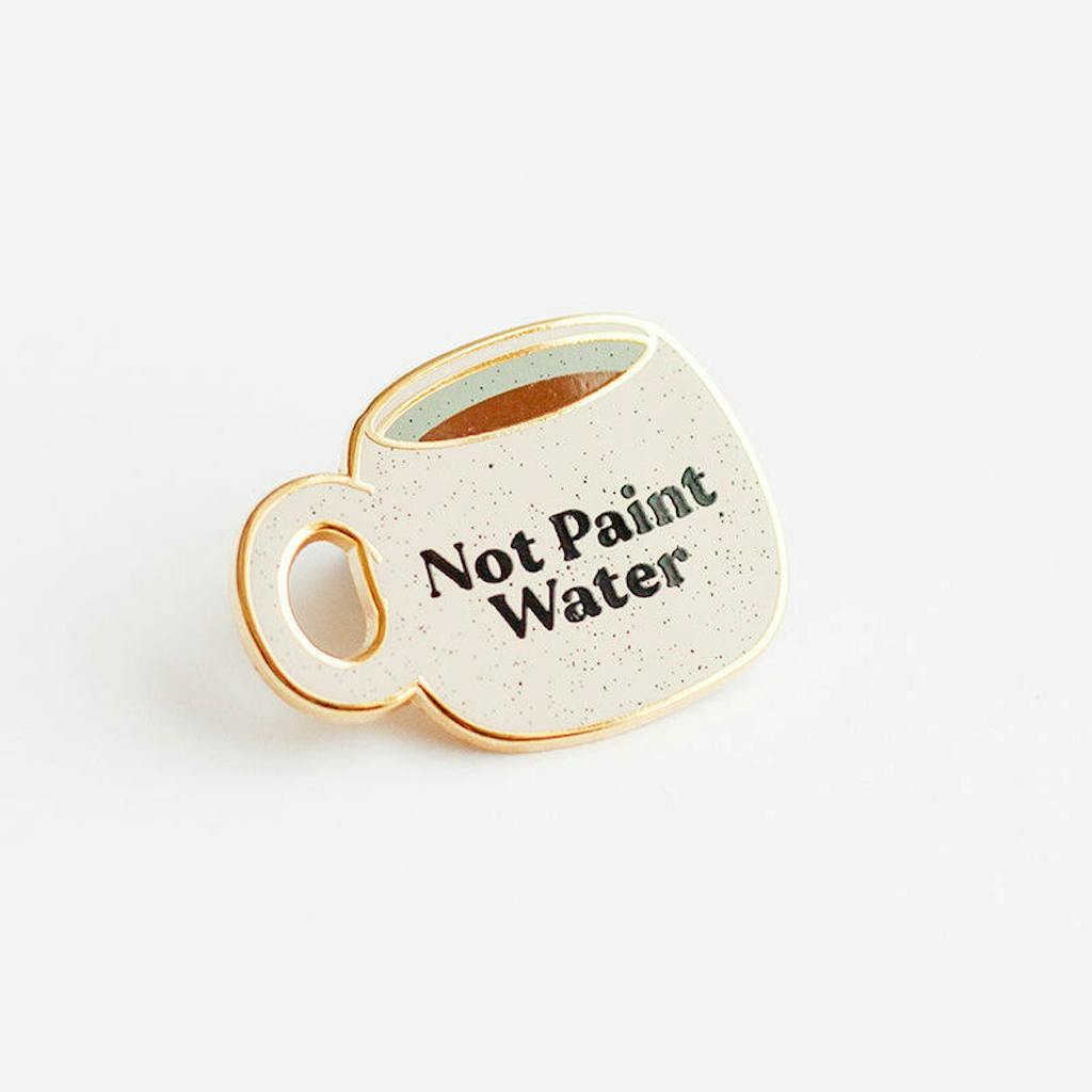 – Detailed enamel pin featuring the playful text "Not Paint Water Cup" – Premium gold-plated finish – 1.25" wide – Double pin posts with durable black rubber backs. Secure your pin with our deluxe locking pin backs or magnetic locking pin backs. – Presented on a branded backing card.