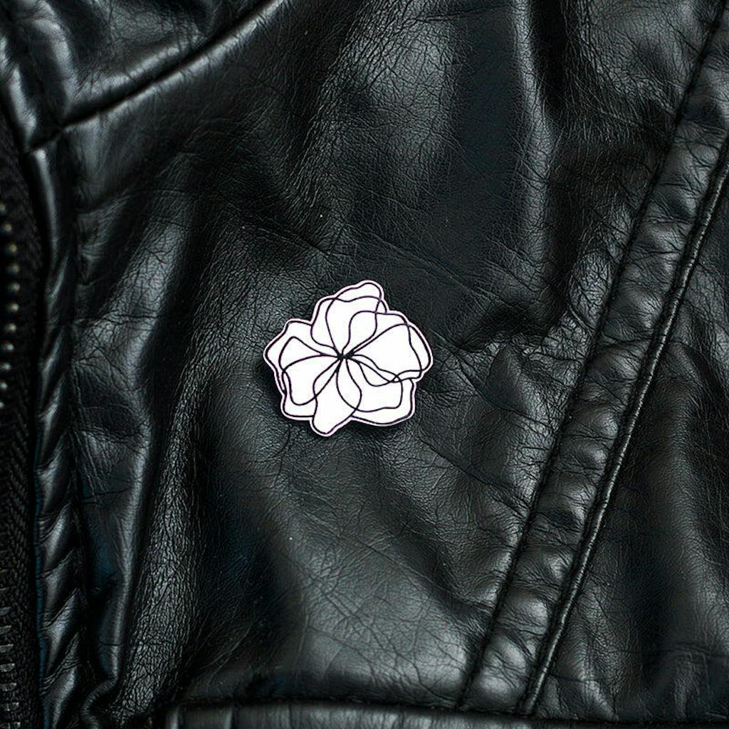 A mini pin with full screen-printing across the base, featuring one line art of a flower. This is perfect for any outfit. Minimal. Subtle. Feminine. Beautiful.