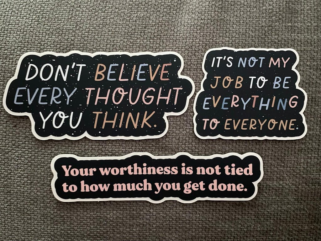 Beautiful quality of stickers that speak truth in a fun way… I like putting them on my computer or other places where I see them regularly! Gentle reminder not to “catastrophyze”!!!