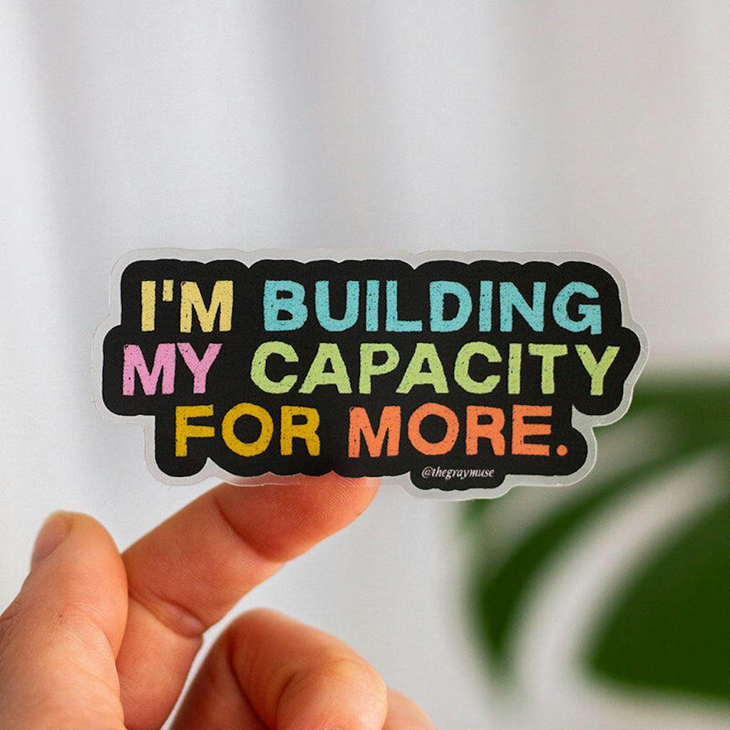The "I’m Building My Capacity for More" Matte Sticker is not just a sticker; it's a declaration of your ongoing commitment to personal growth and the pursuit of greater possibilities. Let this sticker be a daily source of motivation and a stylish addition to your collection, reminding you of the endless potential that lies within.
