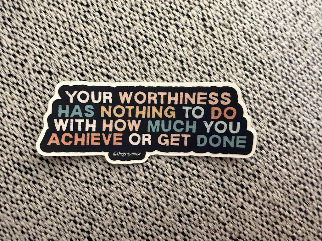 Text: “Your worthiness has nothing to do with how much you achieve or get done."