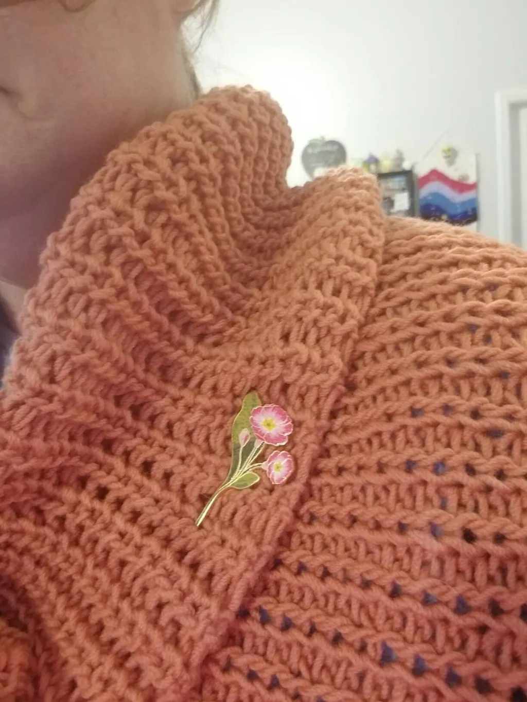 Beautiful flower and high quality pin. This is to add to a knitted cowl as a gift for a friend who has a February birthday.