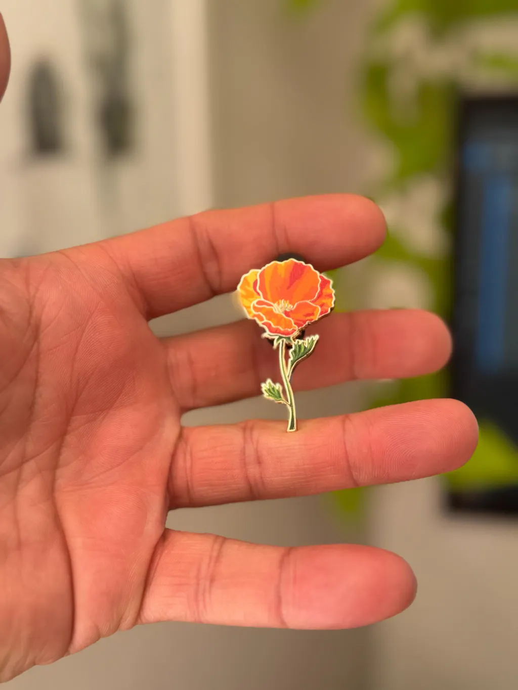 California Poppy v2 Floral Enamel Pin | California State Flower