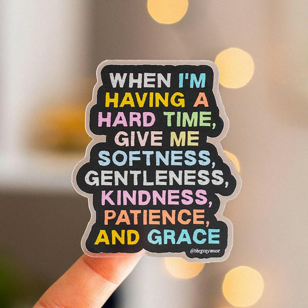 • Text: "When I'm having a hard time, give me softness, gentleness, kindness, patience, and grace."