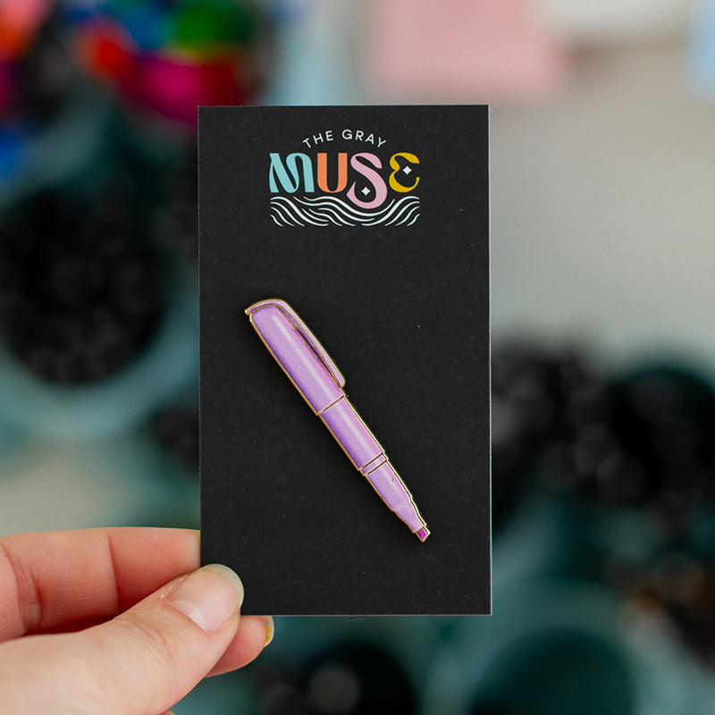 Our "Highlighter Pen" Enamel Pin, in a pastel purple, is for those who like to emphasize the important parts, not just on paper, but in life. It’s ideal for students, organizers, and planners. Add to your pin collection today.